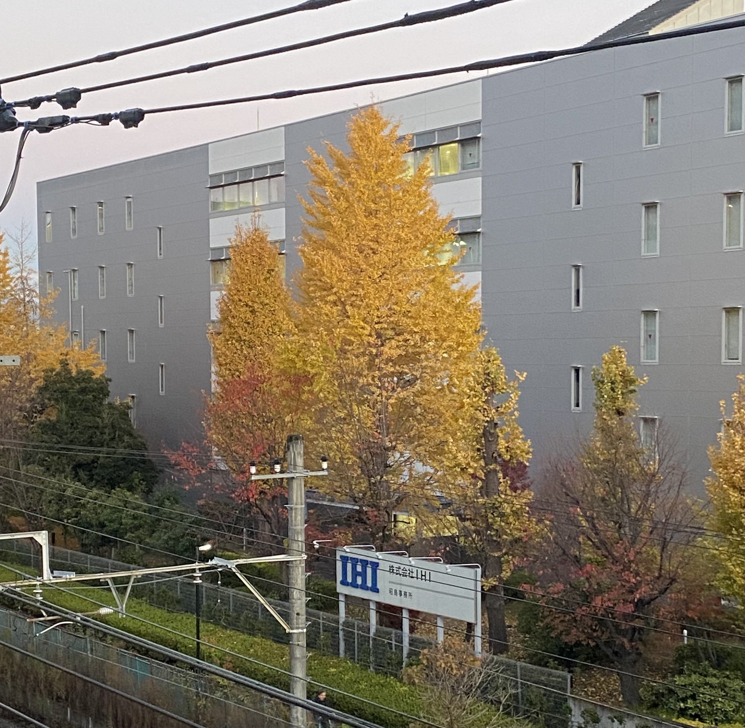 青梅線沿線のイチョウがようやく黄色くなりました。