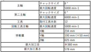対応でき、高速回転(主軸5000min⁻¹、第2主軸6000min⁻¹)と12本の工具搭載で、1台