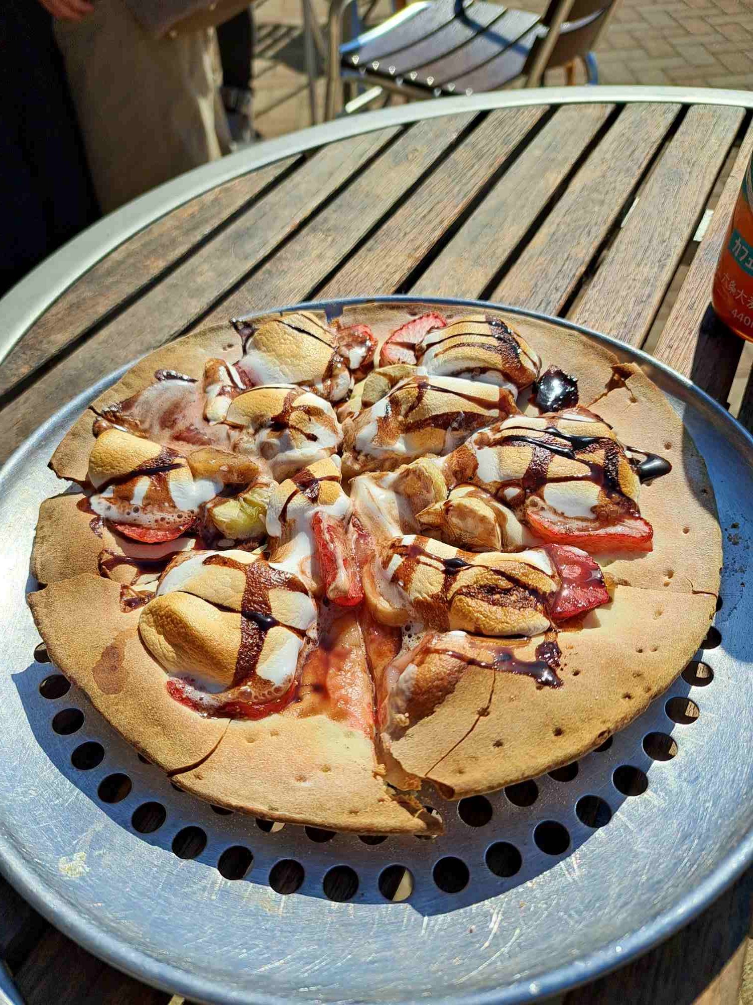 最後は、甘いものを食べない人がデザートのピザを作って焼いたので頂きました。